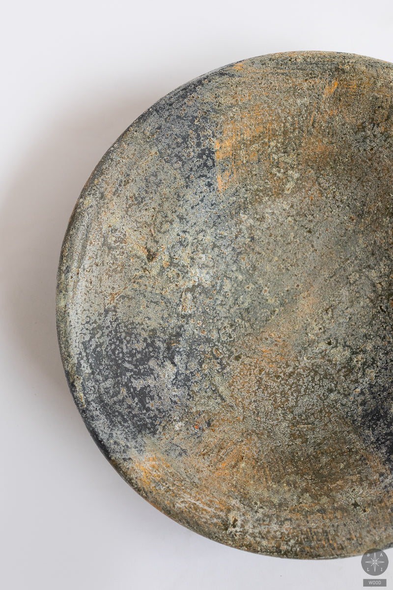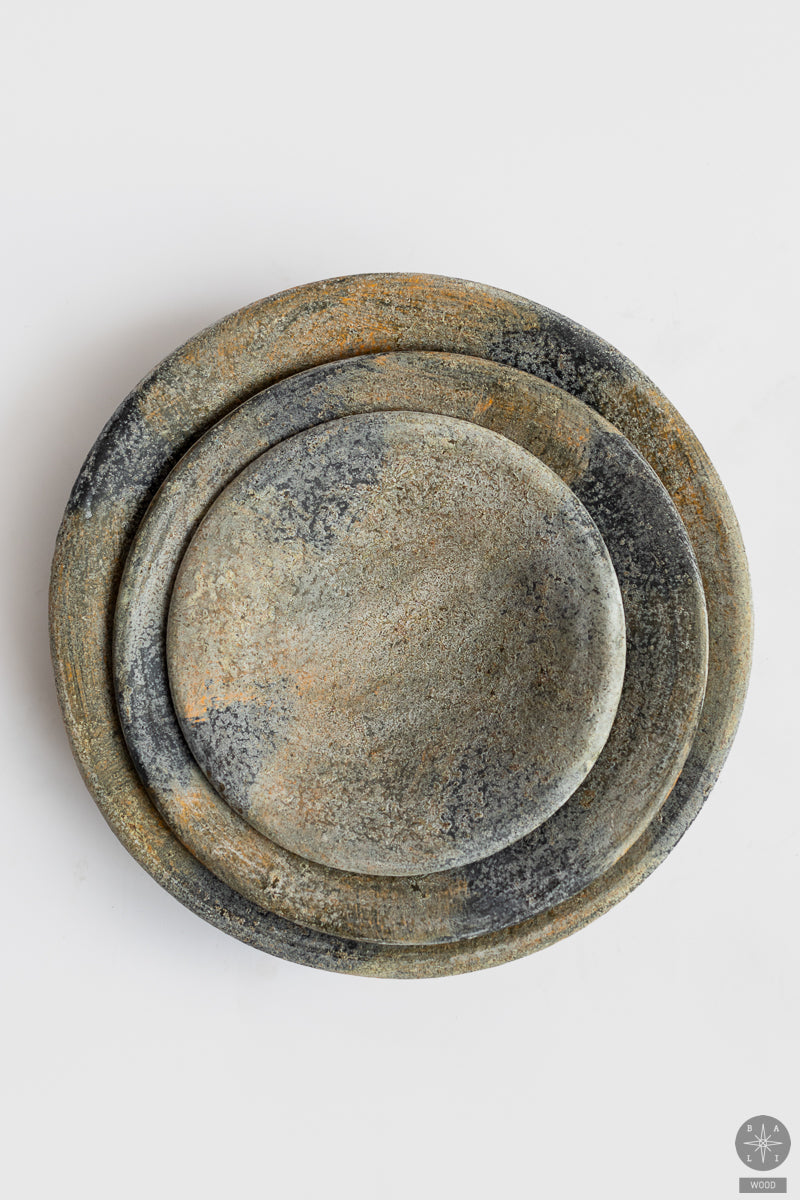 Pilka rankų darbo lėkštė vaisiams iš terakotos iš Balio – subtilaus dizaino, natūralios tekstūros ir švelnaus pilko atspalvio akcentas, puikiai derantis tiek klasikiniame, tiek moderniame interjere.