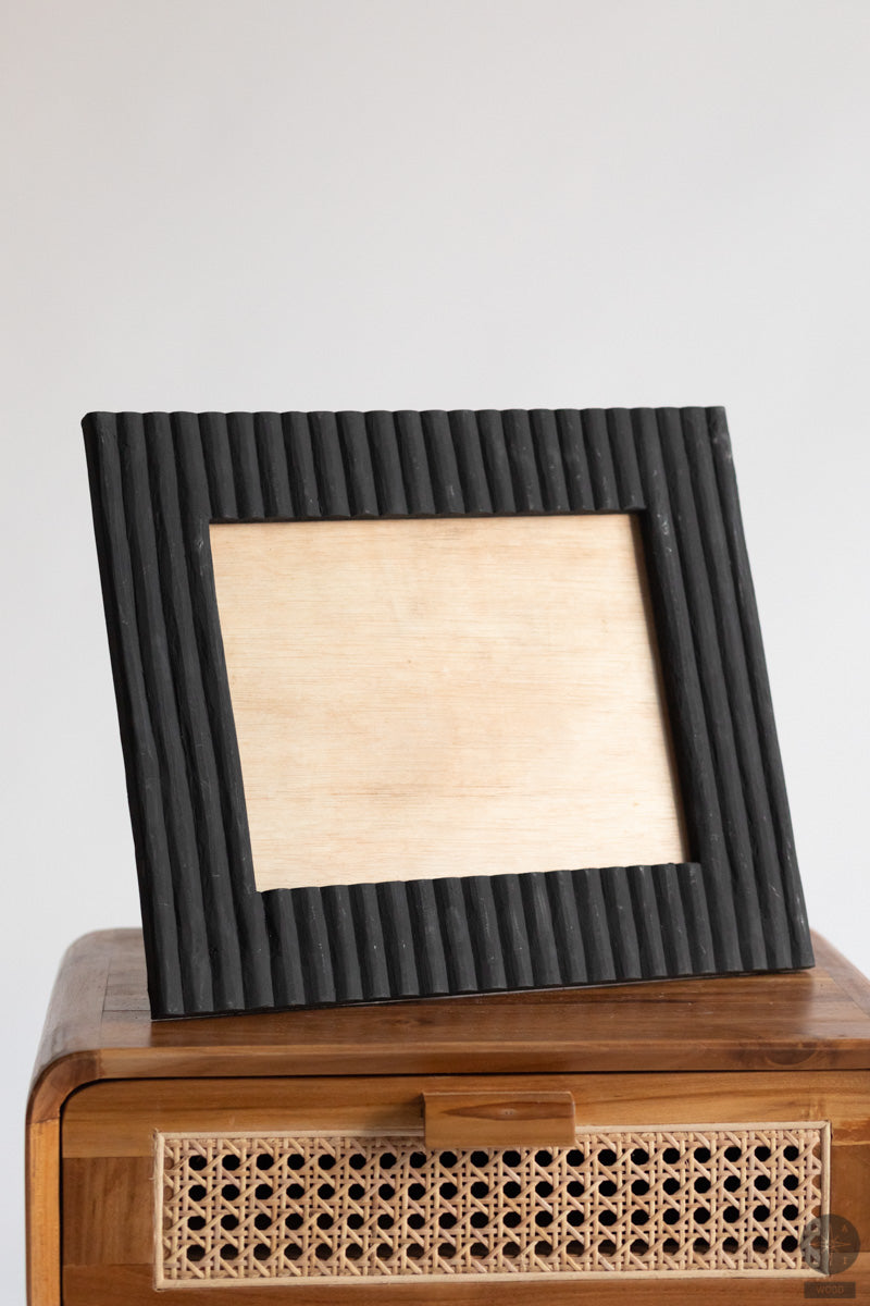 Rankų darbo nuotraukų rėmelis iš juodinto medžio, pagamintas Balyje – subtilus, natūralaus grožio interjero akcentas, suteikiantis jaukumo jūsų namams.