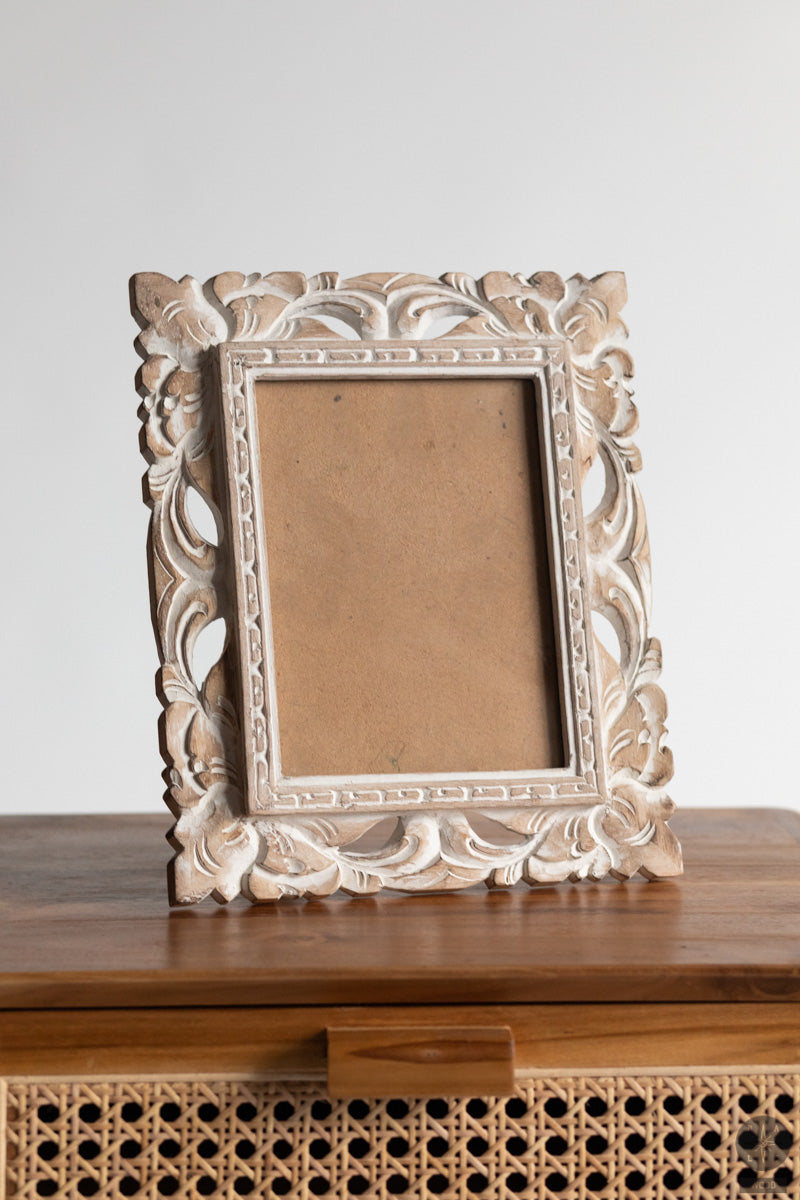 Rankų darbo nuotraukų rėmelis iš balinto medžio, pagamintas Balyje – subtilus, natūralaus grožio interjero akcentas, suteikiantis šviesos ir jaukumo jūsų namams.