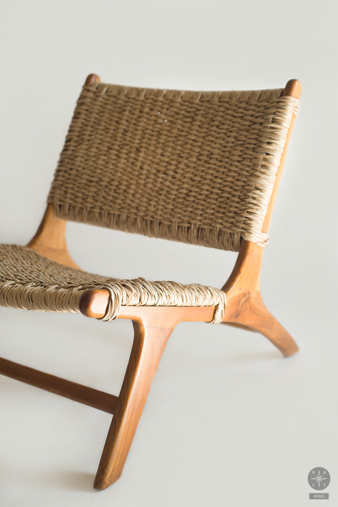 Žemas krėslas iš tikmedžio ir sintetinio rotango
